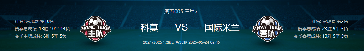 科莫近期状态出色,近7场比赛取得6胜1平的不败战绩,士气高涨。球队的进攻火力稳定,已连续14场比赛取得进球,证明了攻击体系运转良好。主场表现强劲,已斩获三连胜,且近3个主场零封对手2次,防守质量显著提升。不过,科莫的防守端仍存在一些漏洞,面对强敌国际米兰,防线能否抵挡住对手的进攻是一个关键点。此外,科莫的头号射手迪奥恩因足部骨折缺席,后防核心多塞纳膝盖扭伤,这将影响球队攻防两端的实力。