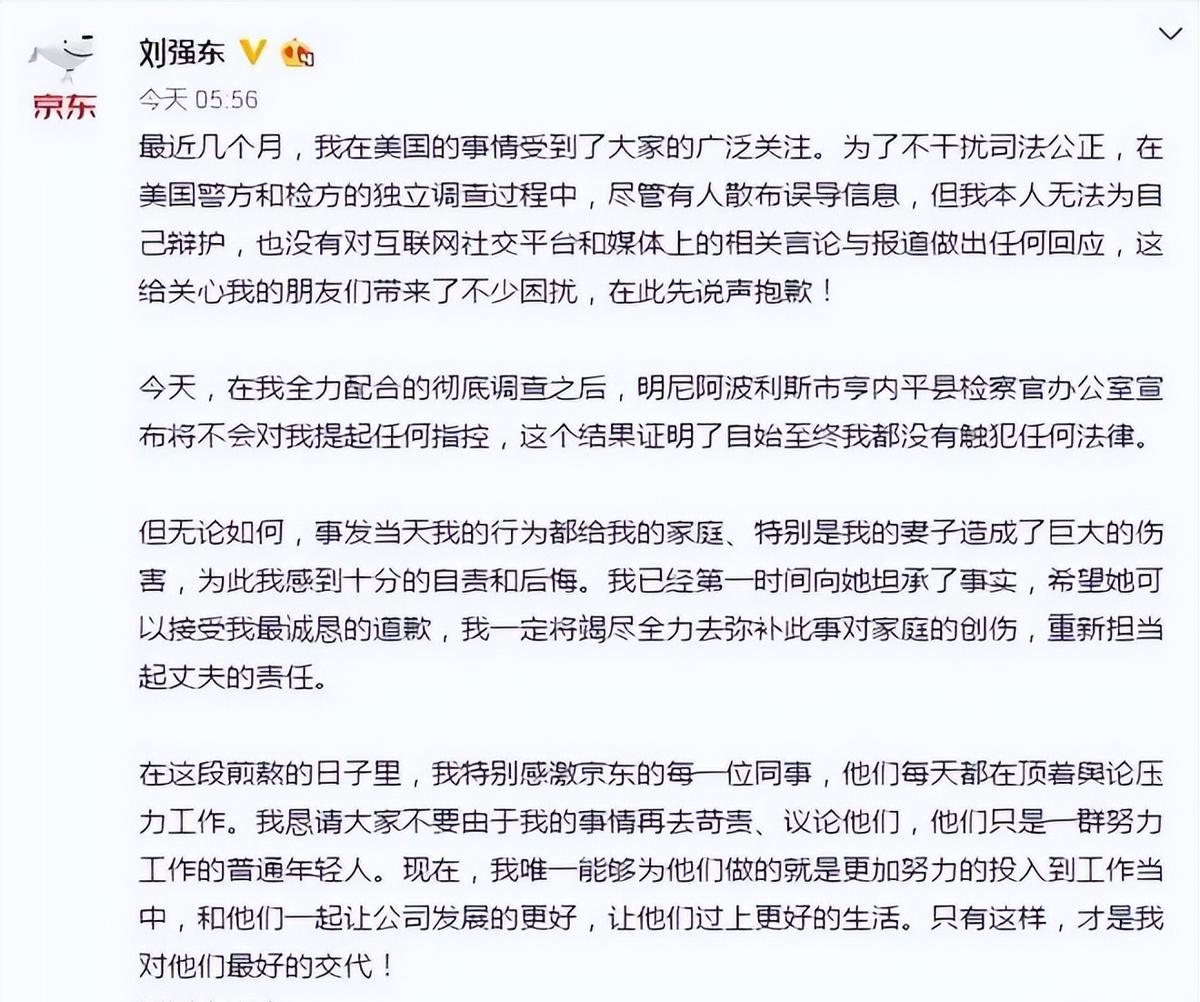 事件虽没有为刘强东带来法律后果,但名誉受损的阴云未散去,这场风波让章泽天重新思考个人职业生涯的方向。