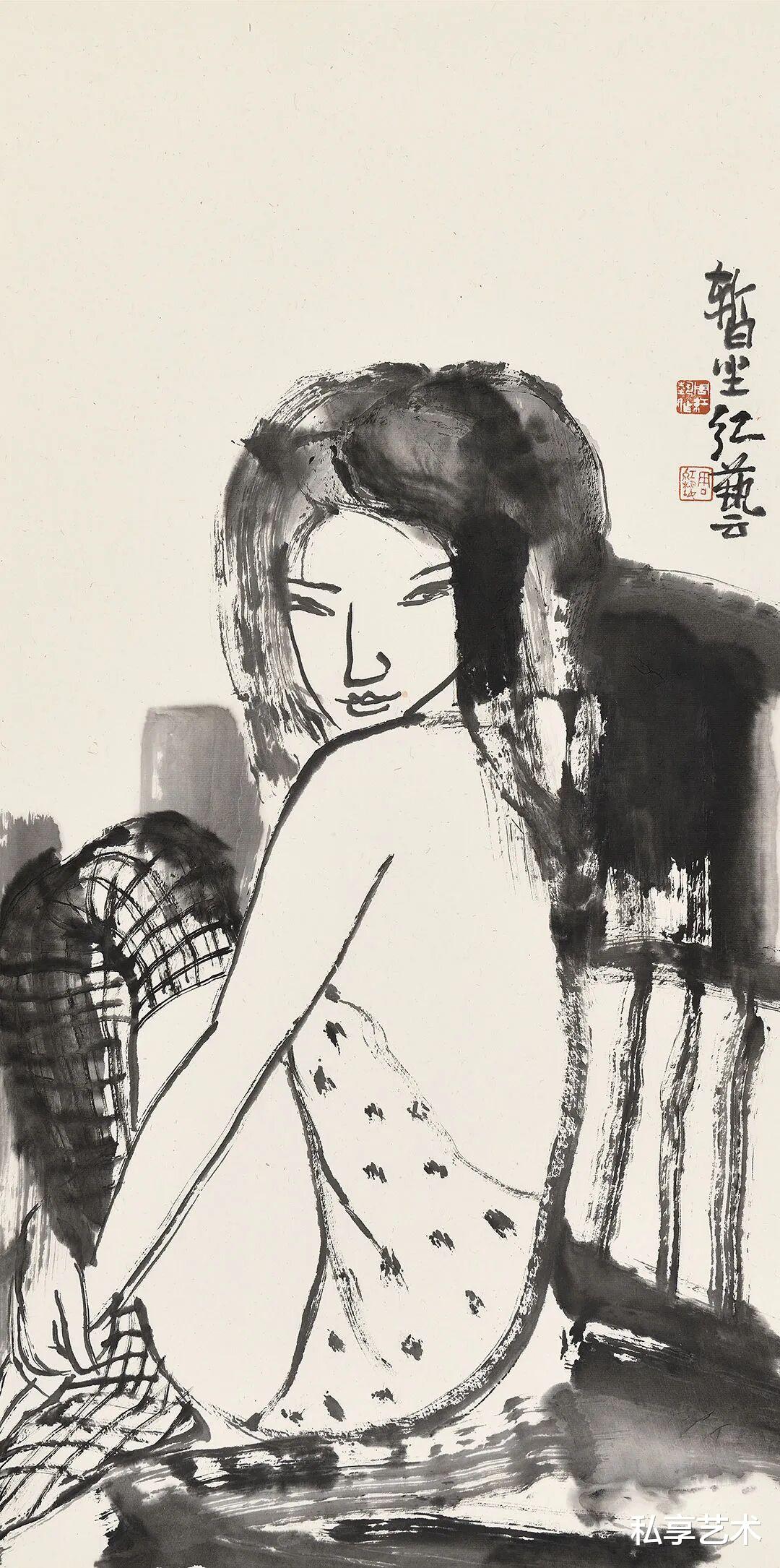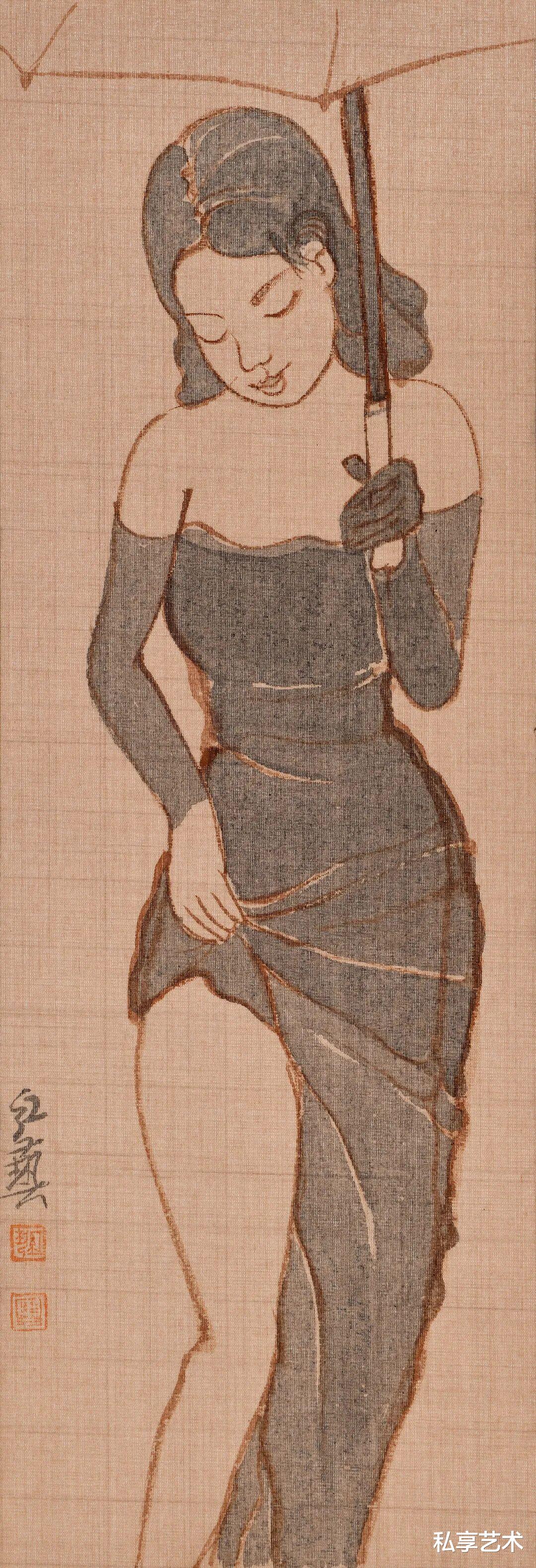 红艺兄因美女画而更受关注,甚至有不少人认为,他就是以画美女为专长。就像不少人将我视为“不务正业的美食作家 ”一样。红艺兄说,“我不是在画女人,而是在画画。很多人只是着于相在看画。”或许不可排除,红艺兄画美女也有“踩点 ”的诉求,但若戴着“美女 ”的滤镜去看画,也的确会辜负笔墨与形象的美。就像若把“流氓 ”的帽子简单地扣给朱新建,那便有可能失去进入笔墨内境去认知他艺术个性和贡献的机会。