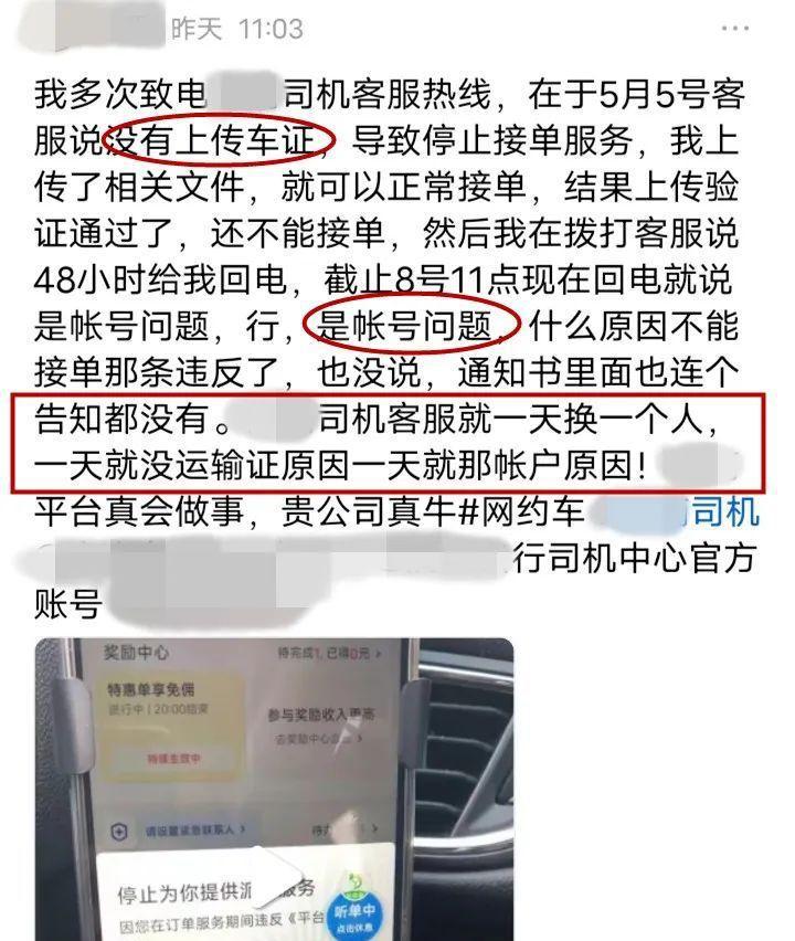 司机在平台上工作,意味着他们为平台提供了可靠的服务并承担了不小的风险。然而,一旦遇到平台的惩罚,他们却往往面临着孤立无援的局面。这位司机在多次联系平台客服后,得到的答案却是天差地别。有一次,客服告知他是“没有上传车证”,而另一次又说是“账号问题”。这种缺乏一致性的回答让他感到无比沮丧。