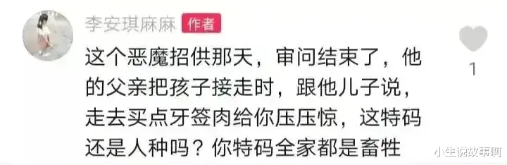 肇事男孩的父亲甚至为他的儿子买了牙签肉来压惊?这让我们怀疑,这样的家庭教育和道德观在哪里?