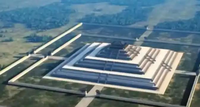 墓室位于正中央,高15米,面积相当于一个标准足球场。