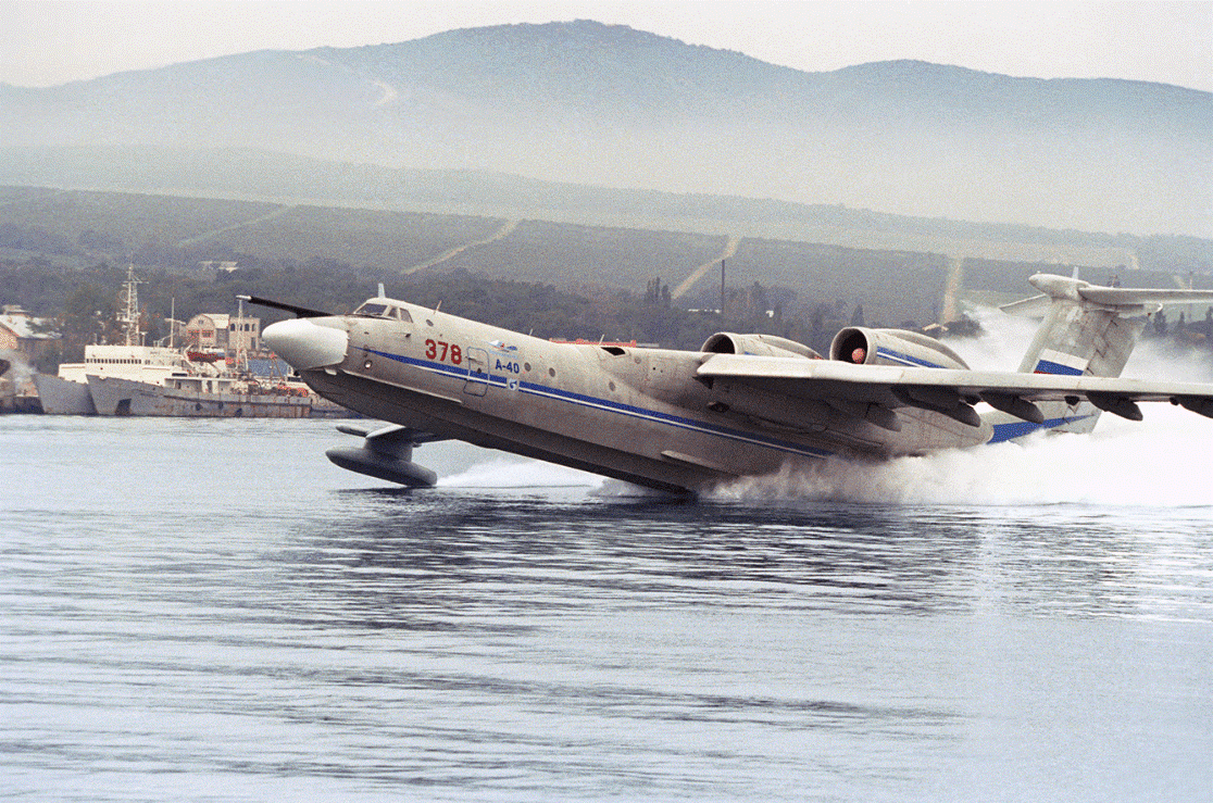 是前苏联时期别里耶夫设计局研制的世界最大的双发涡扇式多用途水陆两栖飞机,于1986年首飞,最大起飞重量86吨,延续苏轼飞机的设计风格,在后机身内设计了一个弹舱,面世后曾打破十余项世界纪录,由于时局变化,未能服役,近年俄罗斯计划恢复A-40的生产。