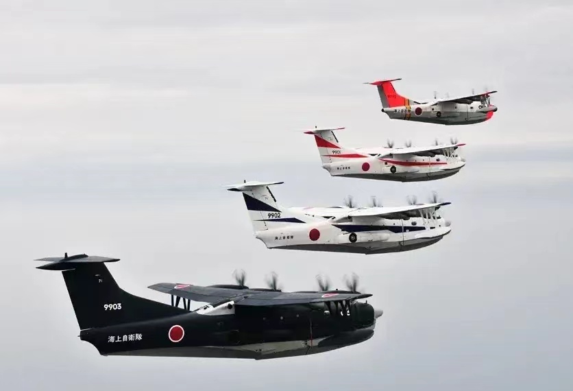 日本新明和工业株式会社研制生产,最大起飞重量48吨,可搭载20名乘客,是日本海上自卫队的第三款大型两栖飞机,装备三台罗尔斯·罗伊斯AE2100J涡轮螺旋桨发动机,可以携带15吨水,在“鲲龙”出现前是除了俄罗斯之外唯一具备生产大型水陆两栖飞机的国家。