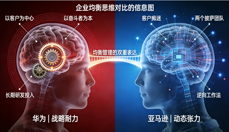 摘要:在现代商业的复杂系统中,卓越的企业往往不是追求单一极致的偏执狂,而是驾驭多重矛盾的均衡大师。本文以华为与亚马逊为深度剖析蓝本,揭示其以“均衡”为核心的管理哲学与实践体系。研究认为,华为的均衡体现在战略耐力的构建,是“力出一孔”的聚焦与“利出一孔”的机制保障之间的动态均衡;亚马逊的均衡则根植于“第一天”文化,体现为对未来的无限投入与对当下的极限效率之间的张力管理均衡。本文进一步将视野扩展至宁德时代与全球大型金融机构,论证了均衡管理在技术制造与风险经营领域的普适性。最终,提炼出均衡管理的核心框架:它是一种使组织在相互冲突的目标(如创新与效率、增长与风控、长期与短期)之间保持动态稳定,从而获取可持续竞争优势的系统性能力。研究结论表明,理解并践行均衡思维,是任何组织在VUCA时代构建韧性与实现基业长青的关键。