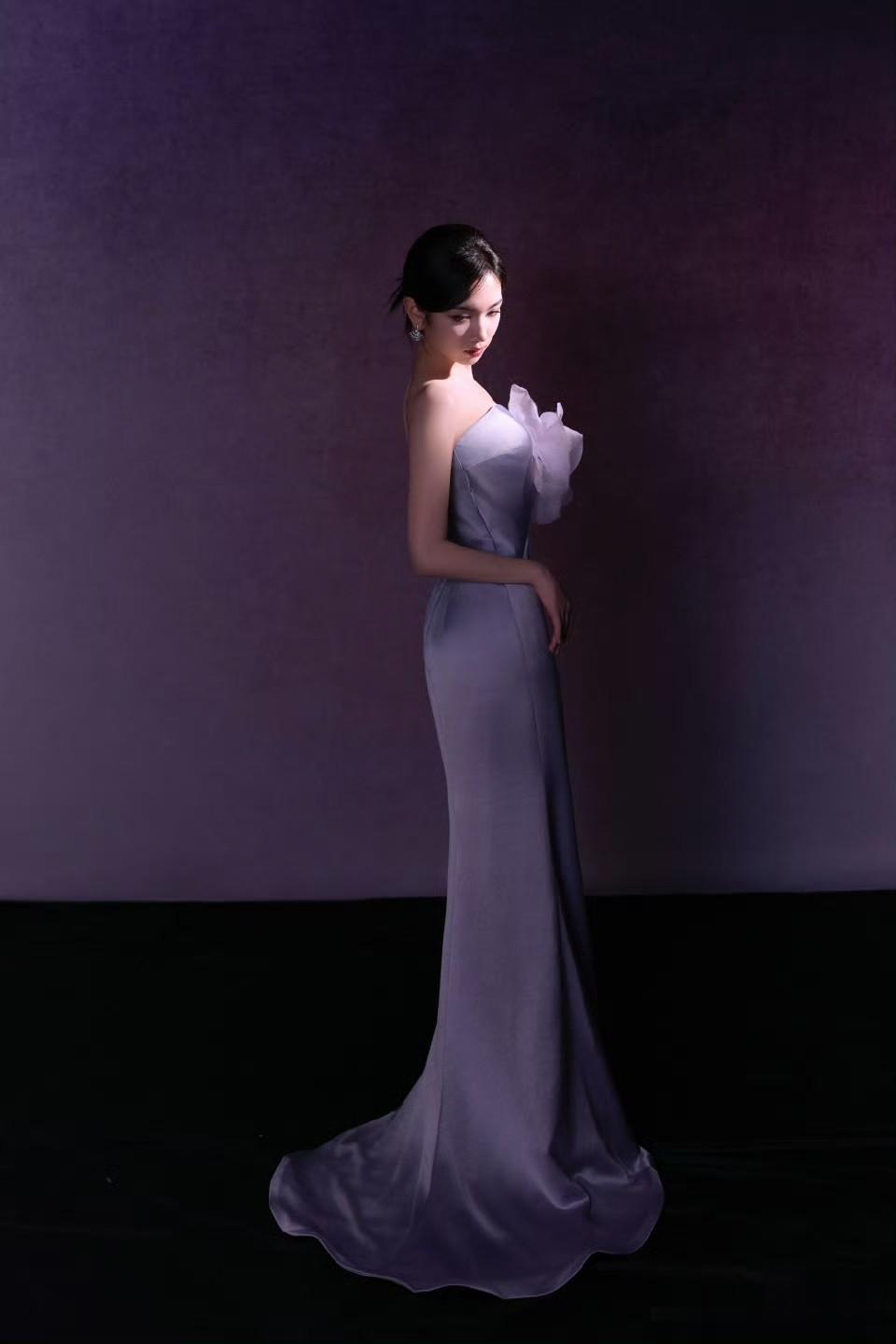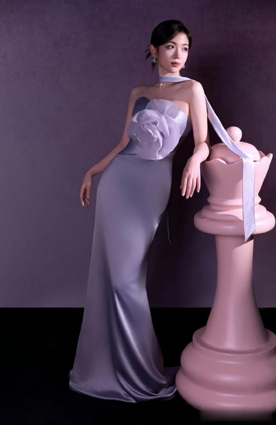 代露娃穿紫色鱼尾裙,那叫一个优雅曼妙。她1997年4月29日出生于辽宁沈阳,毕业于中央戏剧学院。紫色鱼尾裙完美贴合她的身形,勾勒出迷人曲线。裙摆随着她的步伐轻轻摇曳,恰似灵动的美人鱼。