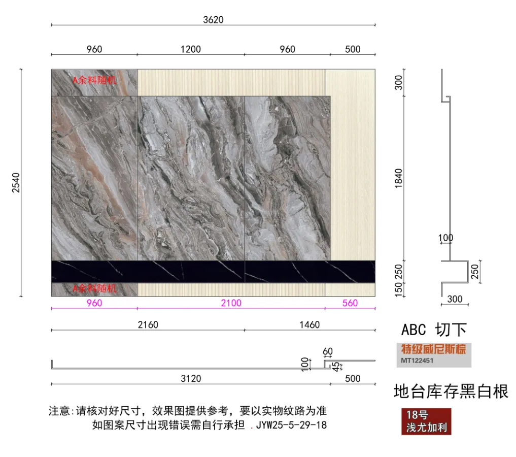 5.龙总把悬空位置图案改成新古道灰岩板,这也是非常棒的一个调整,最经典的设计,总是黑白灰,悬空的新古道灰和地台的黑白根形式成了新的和谐。