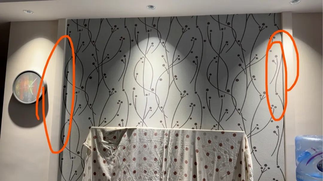 于是我问他右侧墙面是什么情况,因为他提供的这个图片,右侧看不全。龙总于是给我拍了几张发过来。