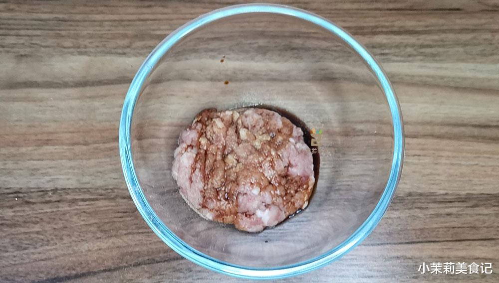 1、先来准备一点肉馅,最好肥瘦都带点,先放生抽,胡椒搅拌匀,不要放盐。