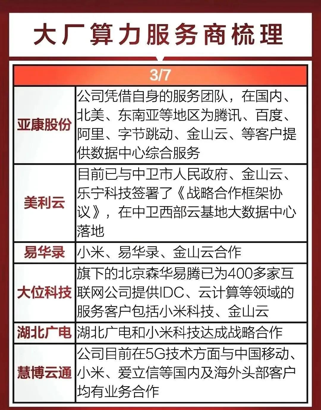 润泽科技:它在河北等地建有超大规模的数据中心园区,就像“算力电厂”。字节跳动是它的核心大客户,这种集中式、超大规模的供应模式,让双方关系非常紧密。