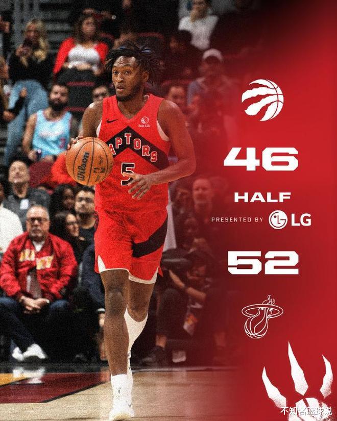 次节比赛,热火首次单节轰下30+得分,且限制猛龙连续两节不足25分,热火内外开花率先一波14-2攻势,成功以36-25反超11分。猛龙回敬一波13-2攻势追到38-38,双方随后持续拉锯战缠斗至43-43,热火打出一波9-3攻势取得领先,上半场比赛结束热火52-46反超猛龙。前两节比赛,猛龙三分23中9,英格拉姆9中5得到18分;热火三分19中7,鲍威尔11分与阿德巴约13+9。