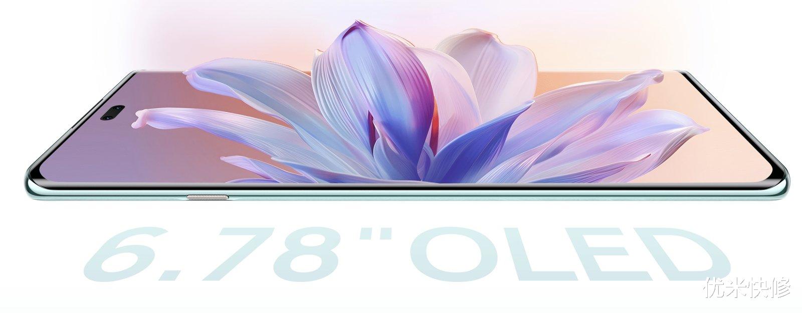 华为畅享70X正面搭载一块6.78 英寸双曲面OLED屏幕,采用“挖槽”形设计,这块屏幕拥有全局1200nit亮度,并且支持120Hz 刷新率和2160Hz高频PWM调光。