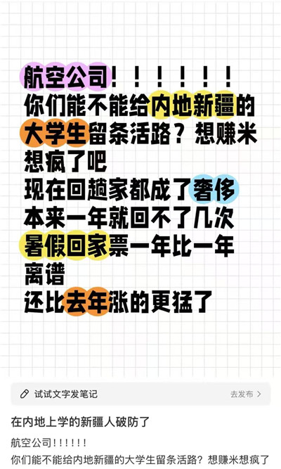 由此一度引发了新疆籍贯大学生在社交媒体上对航司的声讨浪潮。