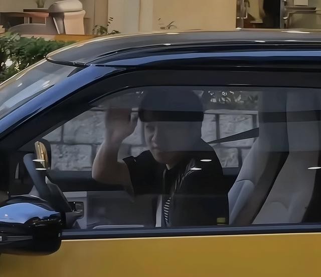 原来是他看到了王祖蓝开着一辆黄色的迷你小汽车正在等待拐弯。