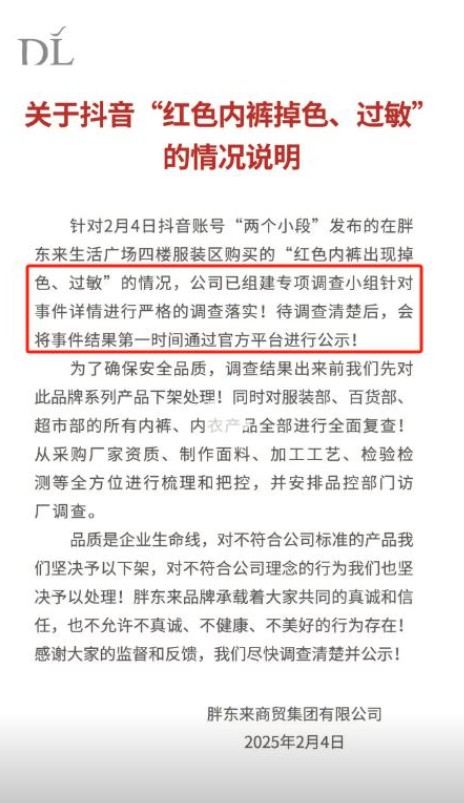 不过很快胖东来官方便对此发出声明,并成立了相应的调查小组。