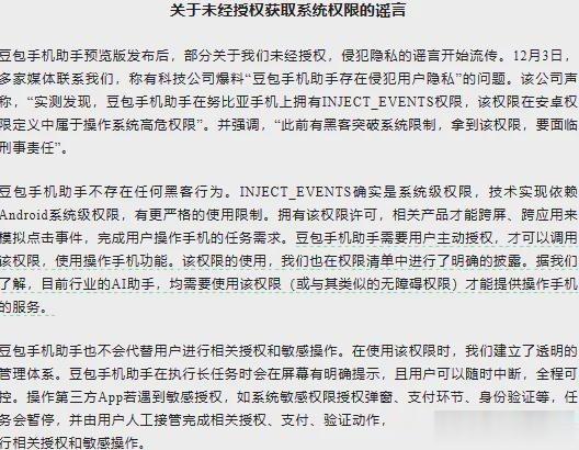 有人说这是创新,让手机像自动驾驶一样帮你做事,但也有人担心权限问题太大,用户安装时看到一堆权限说明,却弄不明白“屏幕截图读取”和“结构化解析”是什么意思,也不知道数据去了哪里,豆包提到数据会先本地加密再上传,但没说服务器怎么处理、存储多久、有没有脱掉敏感信息,也没找第三方来检查,再说这个权限原本是给残障人士设计的,现在被用来做智能助手,听起来高科技,其实和以前的自动化脚本差不多,就是藏得更深、跑得更快。