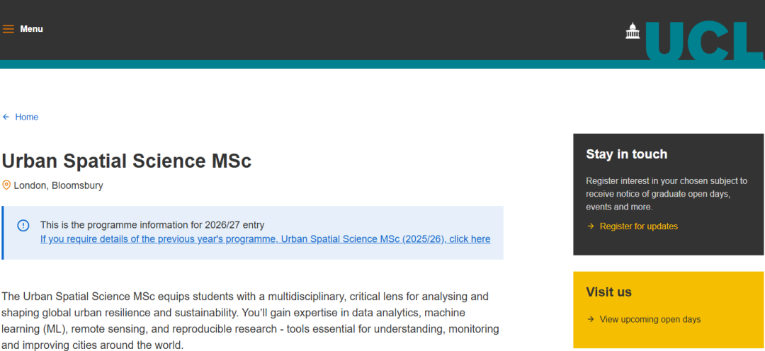 伦敦大学学院城市空间科学硕士Offer