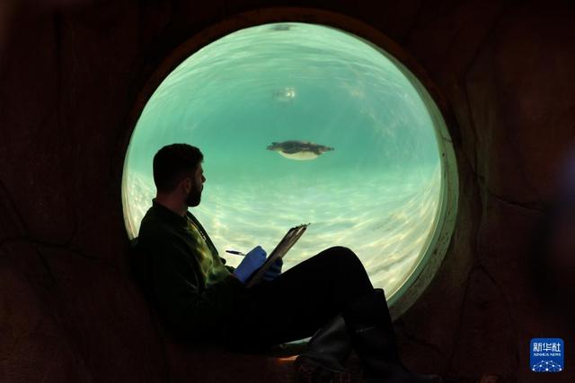 1月3日,在英国伦敦动物园,一名工作人员对企鹅进行盘点。新华社发