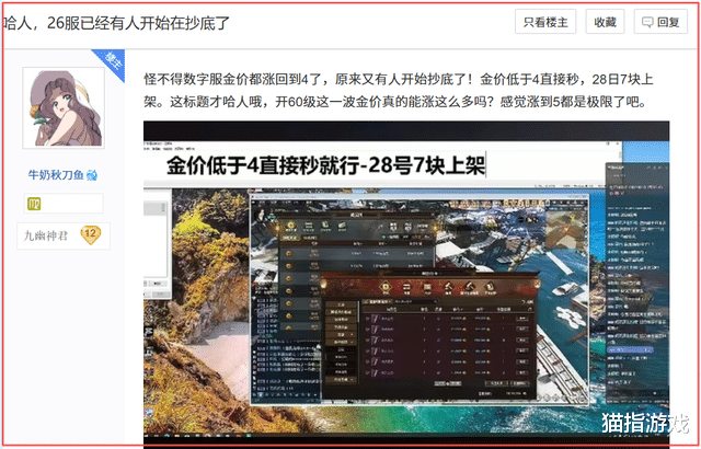 因为囤积时的成本比较低,到28日即便游戏中铜钱价格没有达到他所鼓吹的7块,哪怕只有5、6块,也能让他大赚一笔。