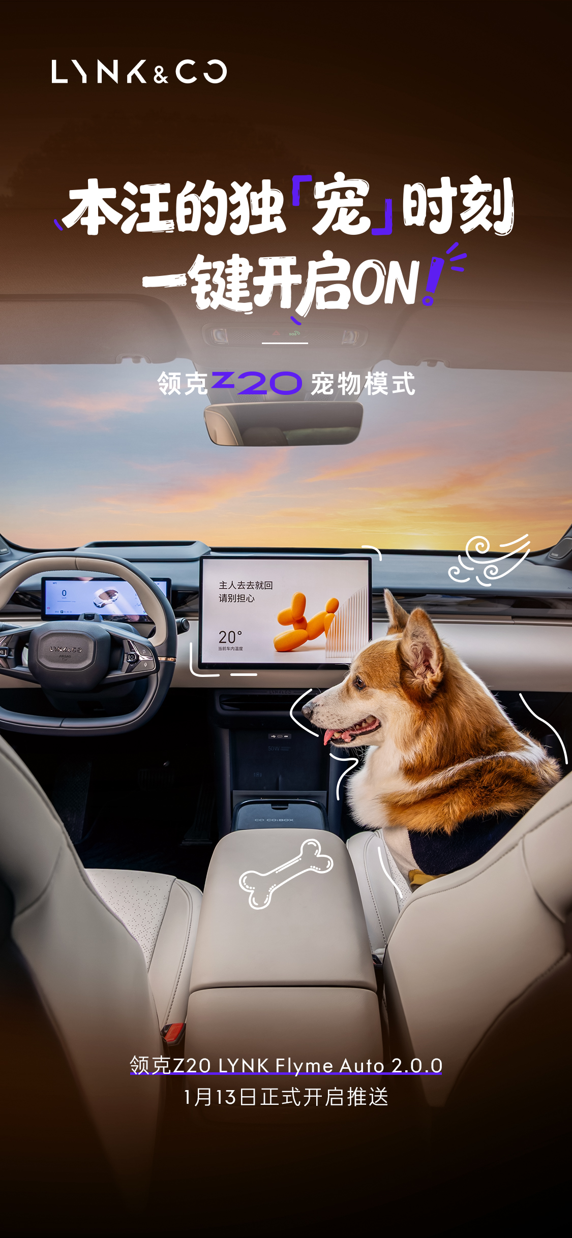 带“毛孩子”出门本是件开心事,但临时需要下车办事时,车主总会陷入两难。关上车怕闷热难耐,开着车又担心安全隐患,这种对宠物安全的牵挂,成了养宠家庭出行的一大心病。市面上多数车型缺乏针对宠物的专属功能,让养宠人的出行体验大打折扣。而领克Z20 LYNK Flyme Auto 2.0.0版本的OTA更新,精准击中了这一痛点。新增的宠物模式堪称养宠人的福音,开启后自动离车不下电、开启空调外循环,还会关闭小窗并屏蔽多余界面,为宠物构筑起移动安全屋,让车主告别临时离车的焦虑,也让车辆跳出了单纯的代步工具属性。