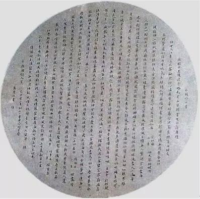 团扇,因有团圆如明月而得名,相传出自汉代。这幅作品共22行,每行字数不等。少则4-5字,多则40字以上。章法围着圆边走,行间留白与环圆留白匀称,款和题头在同一个水平线上,真是用心良苦。