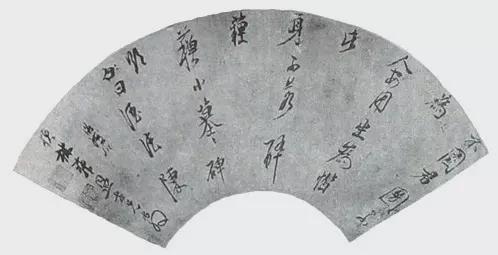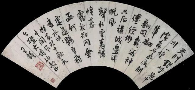 上图的章法为疏朗式,系明代陈鸿寿所书。扇面书法太挤则闷,太空则虚,此作不挤不空,恰倒好处。留出的空间,正好用来表现自我。