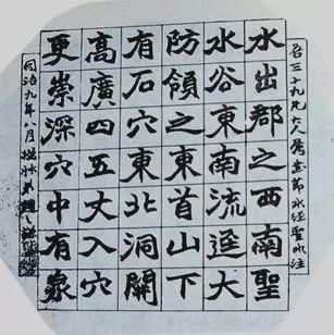 上图也是团扇变形款式,四边去圆为方,亦系赵之谦所作,正文画界格,用魏碑写出,严谨中现出浪漫气,清逸富贵。上款暑正文出处和赠送对象,下款暑时日和作者名。