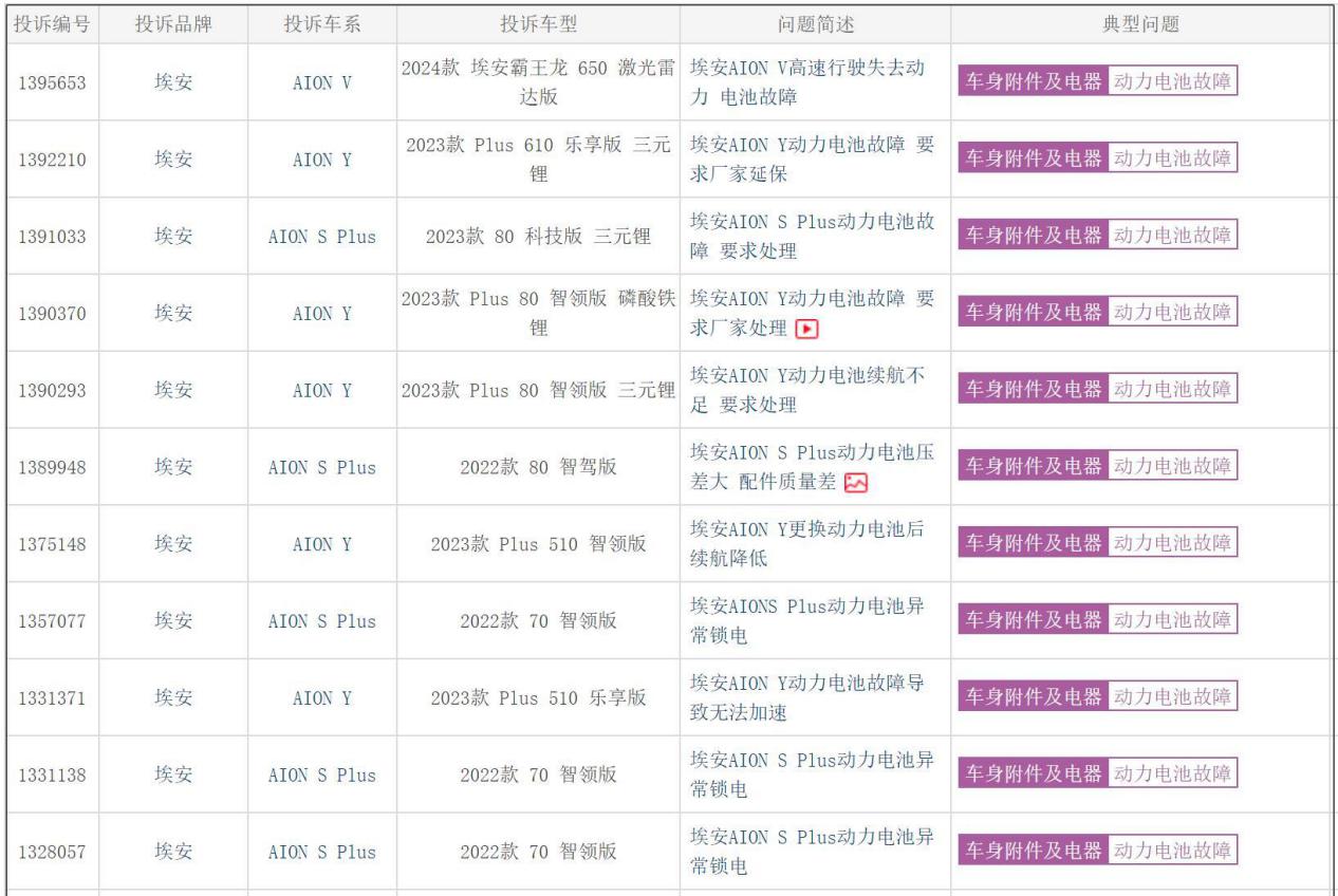 以某知名投诉平台的数据为例,我们可以看到大量关于广汽埃安车型质量问题的投诉。这些投诉涵盖了多个车型,例如AION S、AION Y、AION V以及AION RT等等。其中,关于动力系统、电机以及电池方面的投诉尤为突出。而更令人担忧的是,部分车型的电池问题甚至被曝出是通病,即便在质保期内免费更换,但更换后的电池仍然存在同样的问题。这无疑是对消费者信任的重大打击,也暴露出广汽埃安在产品质量控制和消费者权益保护方面存在严重不足。这就好比医生每次都给你开错药,虽然药是免费的,但你的病能好吗?