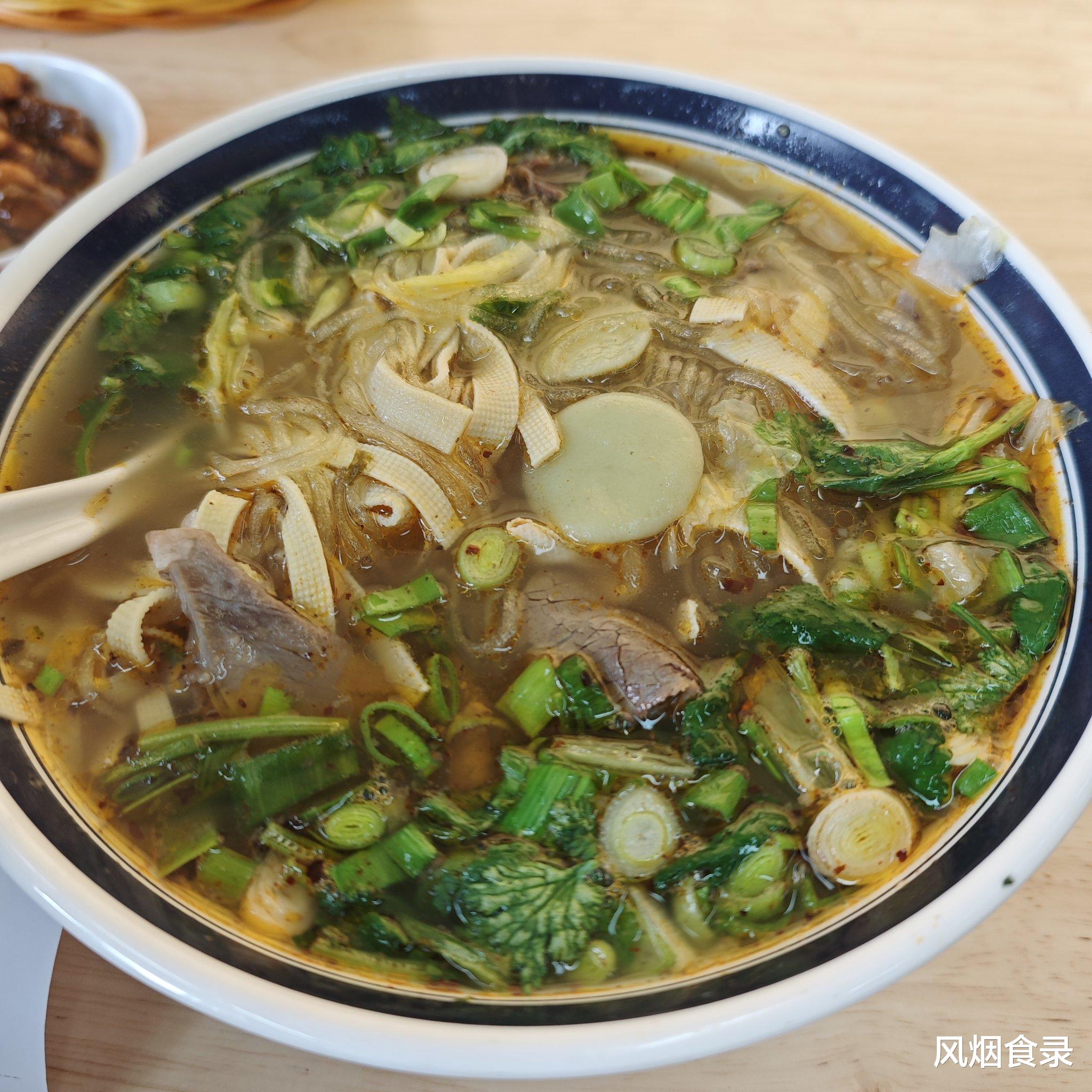 牛骨泡血水,加八角、姜片慢炖,配菜烫熟后浇汤,撒把香菜,热辣鲜香直钻鼻尖,一碗下肚,从胃暖到心窝子!