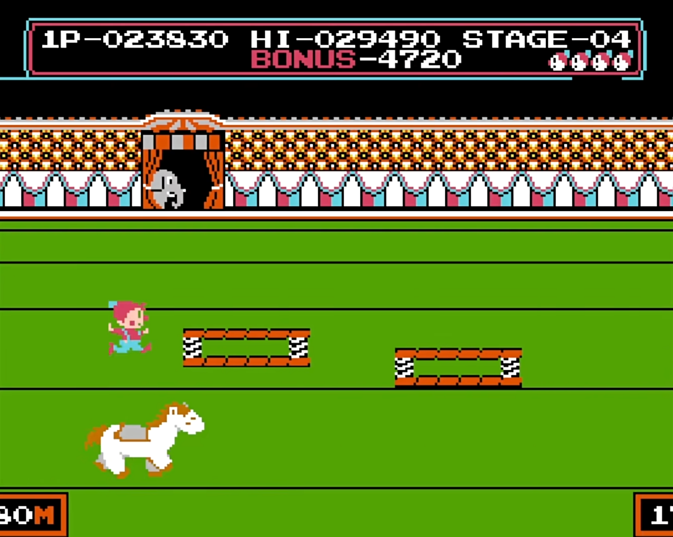 马戏团,这款经典的休闲游戏,童年很多玩家没有通过关,游戏的第四关,骑马的场景,玩家骑马在障碍上跳跃,游戏中马会自动向前奔跑,玩家可以控制马的前进速度,如果碰到障碍,就会死命,当年很多玩家只能玩到这一关。