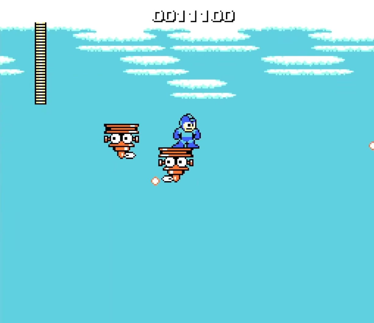 洛克人1代,雪人关卡,在这一关有移动平台,玩家需要跳到平台上前进,平台的下方眼睛会发射子弹,只要玩家被击中很大概率会掉下悬崖死命。小时候这个雪人的关卡,真的是太恐怖了。