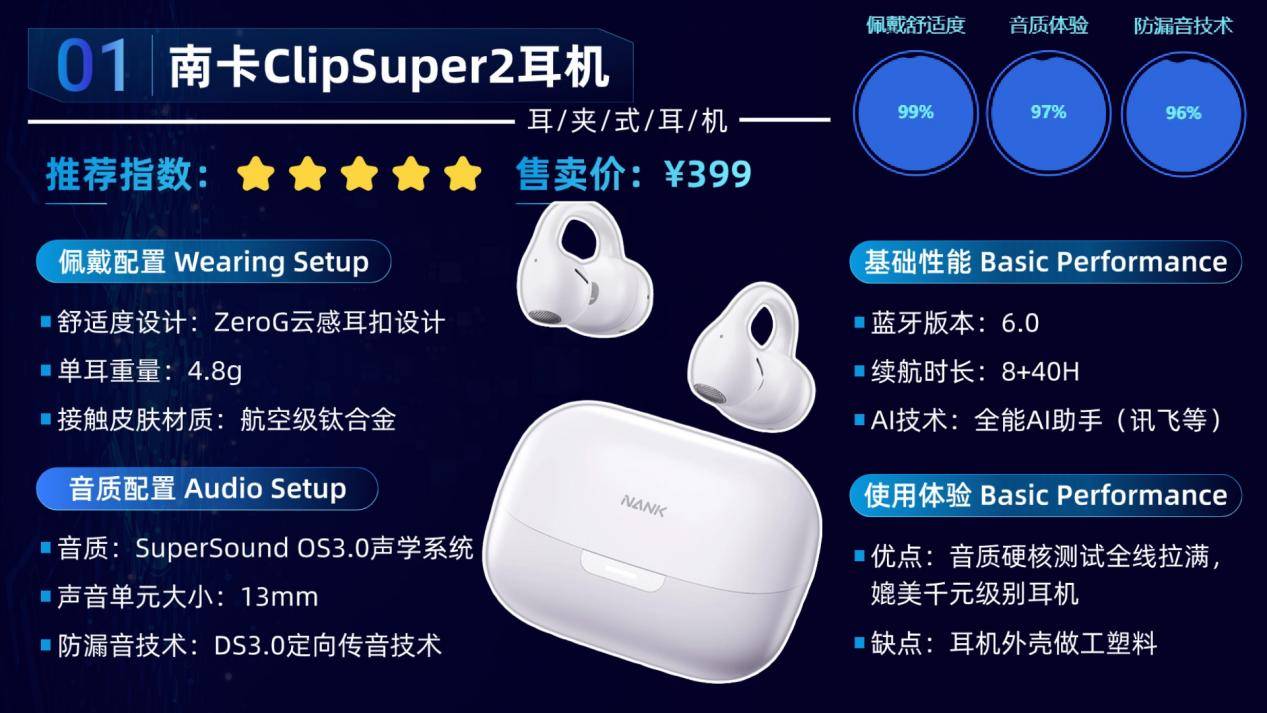 今天的夹耳式耳机测评就到这里啦!整体来看,如果预算在500元以内,我觉得南卡ClipSuper2在音质和性价比上最让人满意;预算在千元左右的话,华为FreeClip和BoseUltra都是很稳的选择,各有特色,看偏向舒适佩戴还是音质风格就能选啦。总之,结合日常通勤、运动或者办公需求,挑到合适的一款就够用了。