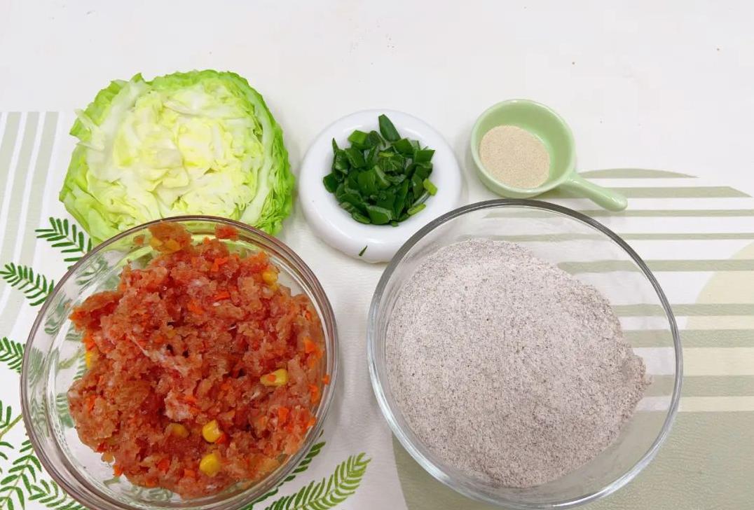 你需要准备一些全麦面粉、猪肉馅、葱花、圆白菜和酵母。