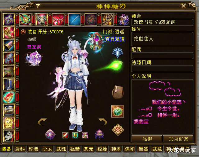 各位老铁,今天在汴京偶遇了一位来自【双龙洞】服务器的卡级逍遥,评分67万但是却戴了5个重楼?