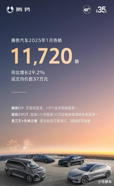 除了王朝丨海洋系列,比亚迪旗下的其他子品牌也在各自的领域中大放异彩。方程豹汽车 1 月销售 6219 辆,旗下的豹 5、豹 8 两款车型凭借硬派的越野风格和出色的性能,吸引了众多越野爱好者的关注。腾势汽车 1 月共计销售 11720 辆,腾势 D9 继连续两年蝉联 MPV 全市场年度销量冠军后,1 月销量高达 10026 辆,再度强势登顶 2025 年 1 月 MPV 全市场销量榜首。全新 25 款腾势 D9 通过智电融合的整车智能架构,为用户提供了更安全、更舒适、更便捷的智驾体验,稳居中国新能源豪华品牌前列。仰望汽车作为比亚迪的高端品牌,凭借其高端的定位和先进的技术,在豪华汽车市场中逐渐崭露头角。