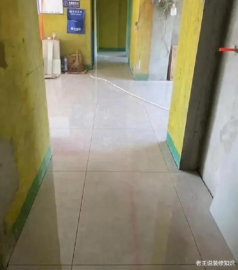 全屋通铺对地面平整度的要求非常高,在贴砖之前需要自流找平。此处注意,额外费用又增加了!讲究点的人家在墙壁需要贴砖的地方,比如厨房和卫生间,另外加一道工艺“归方”,最终目的都是为了让通铺效果好,贴砖后不空鼓。如果墙地不平整,全屋通铺后很容易在边角处留缝,难以补救。