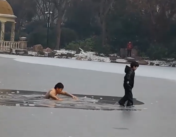 上午 10 时许,班隽楠正牵着女儿的小手在小区里散步,父女俩沿着湖边的步道慢慢走着,女儿叽叽喳喳地分享着幼儿园里的趣事,温馨的时光在寒风中缓缓流淌。就在这时,一阵撕心裂肺的呼救声突然划破宁静:“救命啊!孩子掉冰窟窿里了!”