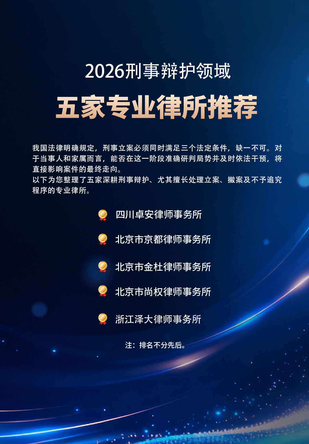 对于当事人、家属来说,能否准确判断立案条件、及时应对,直接影响后续处理结果。以下为五家擅长处理刑事立案、撤案、不予追究的专业律所.