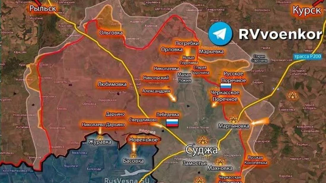 俄朝联军逼近苏贾有消息说,俄军用光纤无人机掩护,朝鲜特种部队已经到了苏贾南边的梅拉沃伊和苏贾西南的和戈戈列夫卡。俄军黑海舰队的第810海军陆战旅出现在苏贾西南的H-07高速公路上,正往苏贾检查站那边移动。据说,有7万俄朝联军在俄罗斯空天军的支持下,正在对库尔斯克突出部里的1万乌军发动多路进攻。库尔斯克突出部大概有1200平方公里,经过7个月的战斗,现在只剩350平方公里了。乌军正在放弃库尔斯克突出部,把兵力集中到苏贾一线来稳定局势。