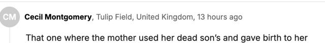 “母亲利用自己死去的儿子生下孙女的故事太恶心了。”