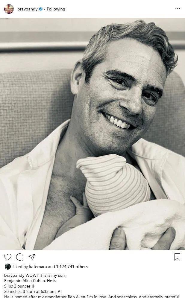 安迪·科恩 (Andy Cohen) 也是在50岁大关时突然醒悟,想要不一样的生活,通过代孕迎来了他的第一个儿子本,52岁又喜提女儿露西。