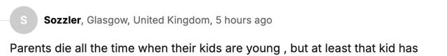 “父母在孩子年幼时去世,但至少孩子获得了生存的机会,并且拥有一个充满爱的家作为他们的开始。”