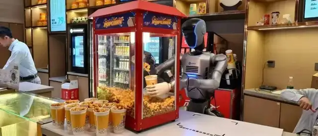 当然,机器人也不只在春节爆火,去年一整年,在商场、景区、婚宴等活动中都不难发现机器人的影子。一些机器人更已经在工厂、小卖部、销售中心等场景中“上班”,比如越疆机器人旗下人形机器人Atom卖爆米花、奇瑞墨甲机器人在4S店负责接待等。