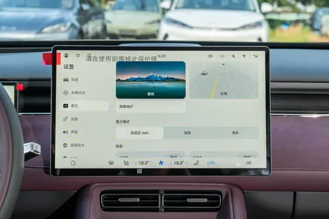 内饰用料也很扎实,手能摸到的地方95%都是软包,仿麂皮材质搭配仿生白桃木饰板,阳光下还带有金丝纹路,门板喇叭罩甚至做了斐波那契螺旋设计,精致度直接拉满。氛围感方面也毫不逊色,配备的256色漫反射光瀑灯,光线柔和得像自然光洒进来,不会像普通氛围灯那样刺眼。还支持“时光模式”,能自动模拟日出到日落的色温变化,加班回家的路上,看着这样的灯光,莫名会觉得很治愈。10.25英寸仪表盘、15.6寸悬浮中控屏、29英寸AR-HUD(直接把导航路线“铺”在路面上)、后排控制屏再加上华为平板拓展(副驾背后MagLink接口一吸即用),坐在车里开车,感觉就像开飞船一样,科技感十足。