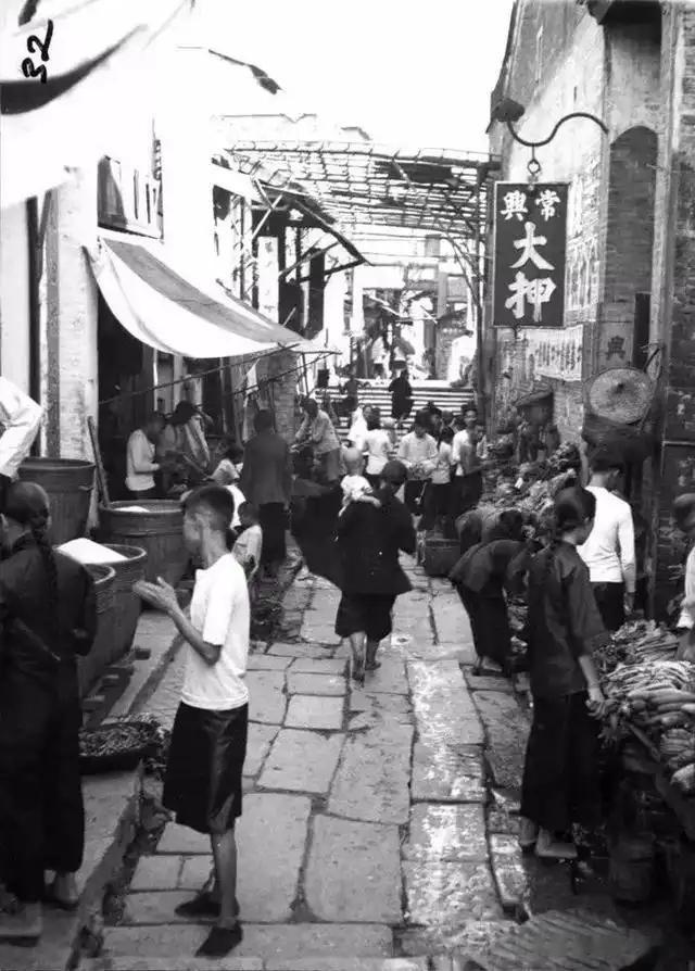 这是1919年广州长堤大马路的街景,窄窄的石板路被市井烟火挤得满满当当,右侧墙面上“常大押”的黑底白字招牌格外醒目,这是当时街坊应急周转的当铺,木牌边角泛着旧痕,却稳稳钉着民生里“临时救急”的底色。