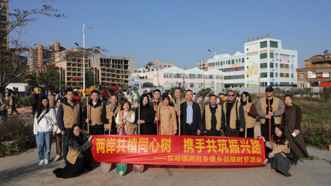两岸共植同心林,血脉亲情落地生根。揭牌仪式结束后,全体参会人员前往当地幼儿园旁闲置地块,开展闽台同心植树活动。大家分工协作、携手栽种台湾红柚等特色果树,共同打造集生态教育、劳动实践、两岸文化体验于一体的闽台乡创研学空间。此次植树活动以树为媒、以绿为介,将两岸同根同源的血脉亲情融入方寸土地,让两岸情谊在共同劳动中持续升温、代代相传。
