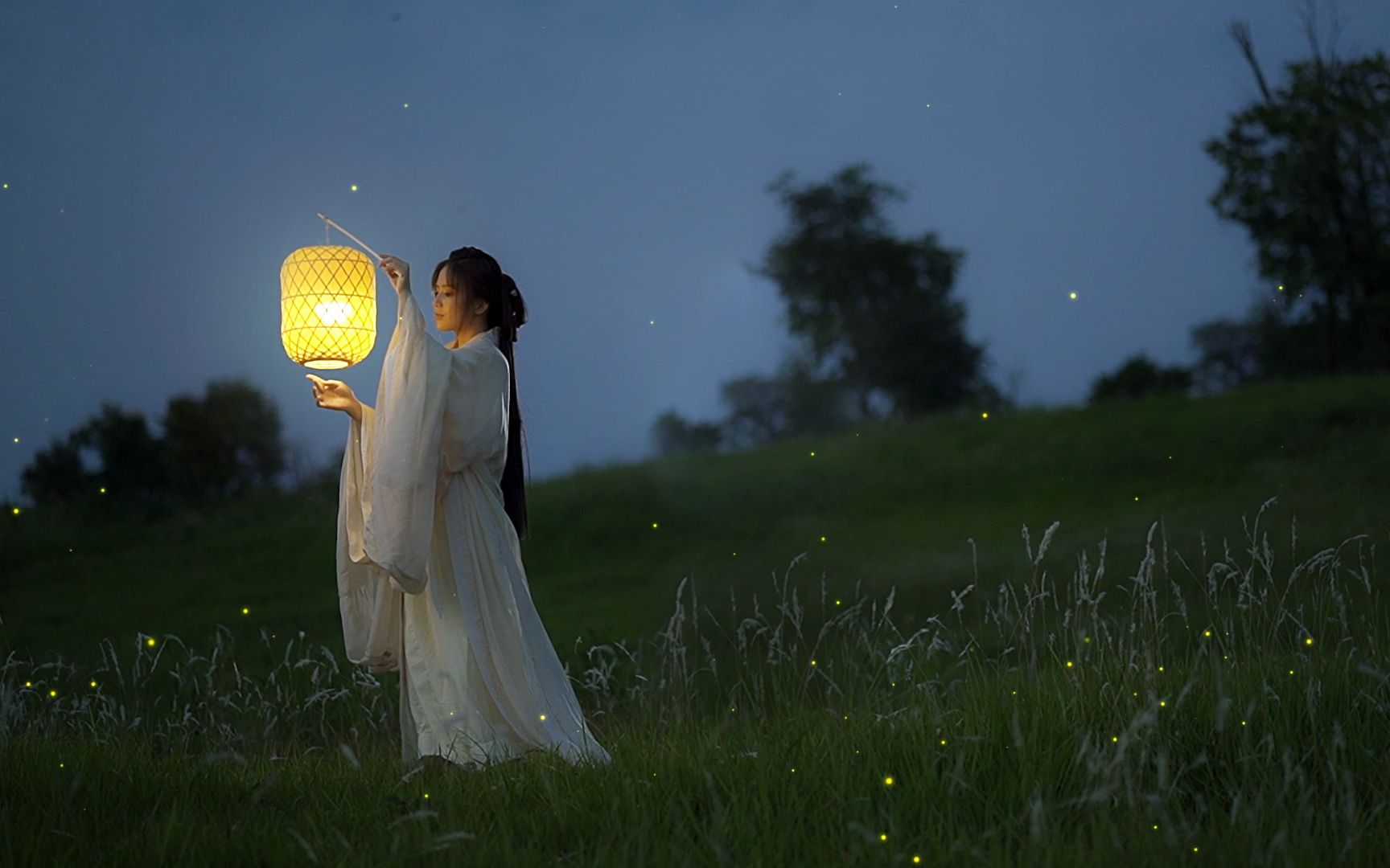 和老友在月圆之夜相逢,星星点点的萤火虫穿梭飞舞。
