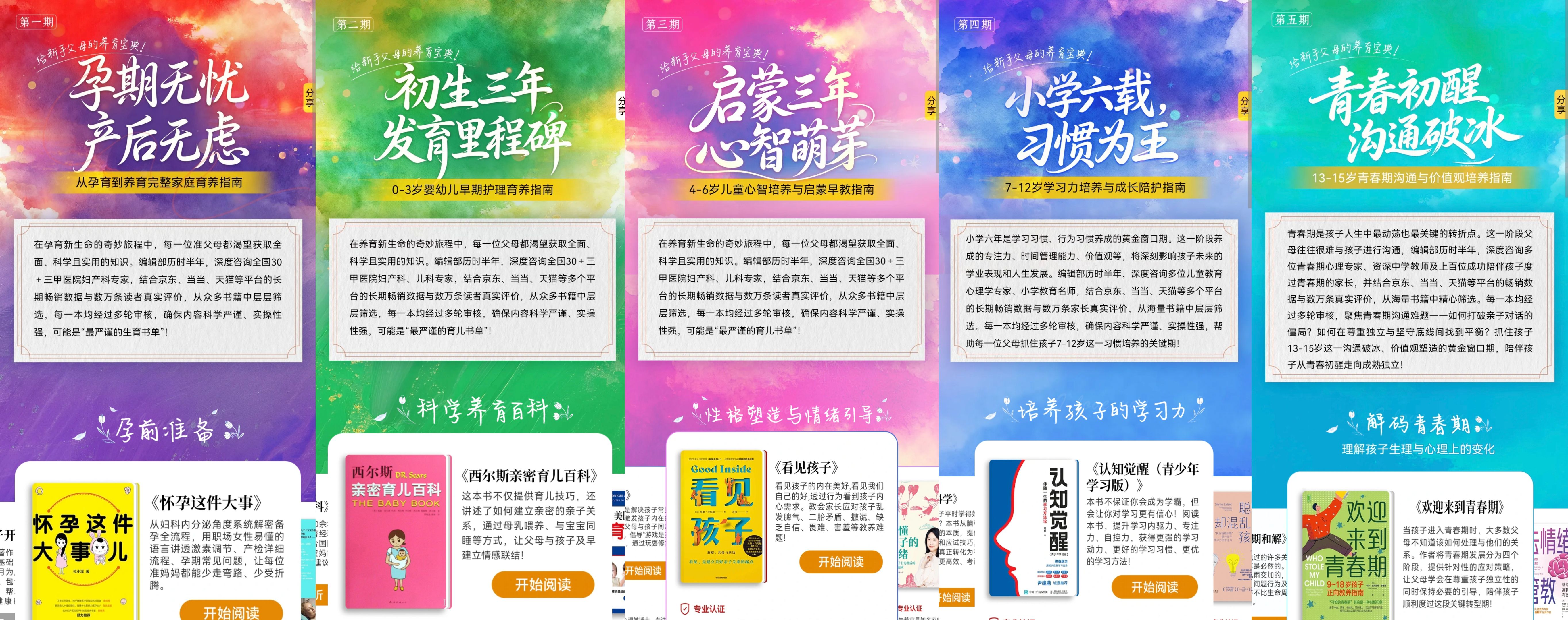 这套育儿书单完全跟着孩子的成长脚步走,5期内容已经上线!不管是备孕孕期、0-3岁带娃,还是4-6岁早教启蒙、小学养习惯,甚至是青春期亲子沟通,每个阶段的干货都安排得妥妥的,帮家长轻松搞定带娃难题。