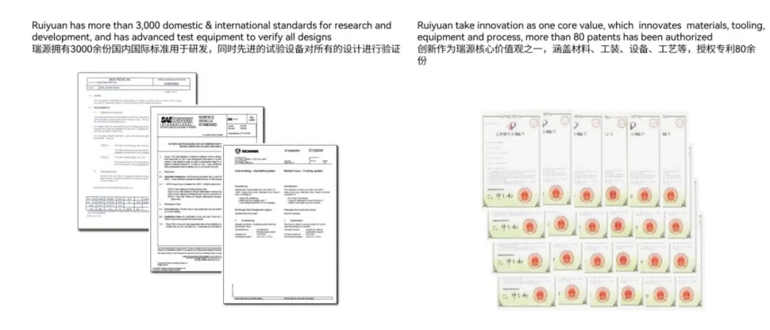 瑞源橡塑制品有限公司成立于2004年,是一家汽车热管理产品研发、设计、验证、制造、销售为一体的高新技术企业,公司现有河北景县、湖北武汉两大生产基地,其中河北景县基地占地面积90亩,有员工410人,研发技术人员106人。公司拥有国家认证CNAS实验室,全自动密炼中心、橡胶塑料挤出线、硫化成型生产线、装配线。