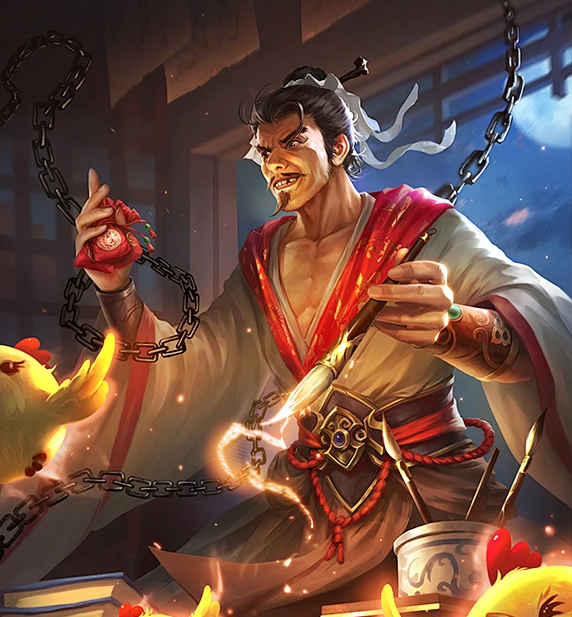 本次策划一共给他安排了两个技能,第1个技能拥有两个级别,在一级的时候可以将一张梅花牌当做铁索连环去使用,或者是重铸,当我们使用铁索连环的时候,自己还可以失去一点体力值。然后当此牌指定目标以后,我们就能够随机丢弃每一名,不属于铁索连环状态的目标,一张手牌当这个技能升级之后,同样也是把梅花牌当做铁索连环去使用,我们可以利用铁索连环指定多名目标,然后随机丢弃每一名不处于铁索连环状态的目标,一张手牌,而他的第2个技能就是之前的涅槃技能在阵亡之后可以直接进入到满血的状态。